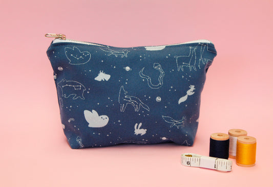 Blue jacquard fabric pencil case with zip, Starry Night print - two sizes available