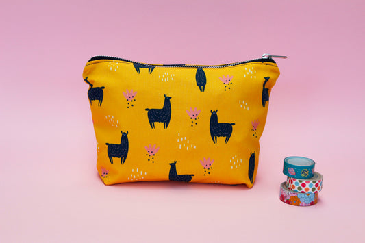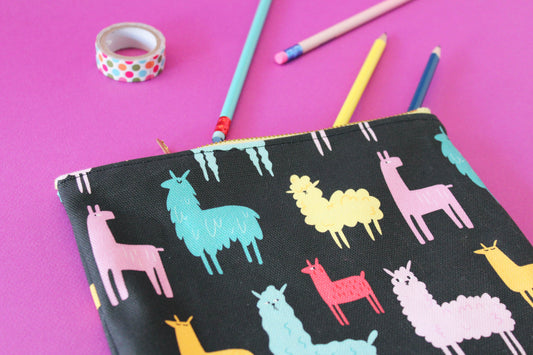 Pencil Case - Forest Llamas with blue or yellow background (two sizes available)