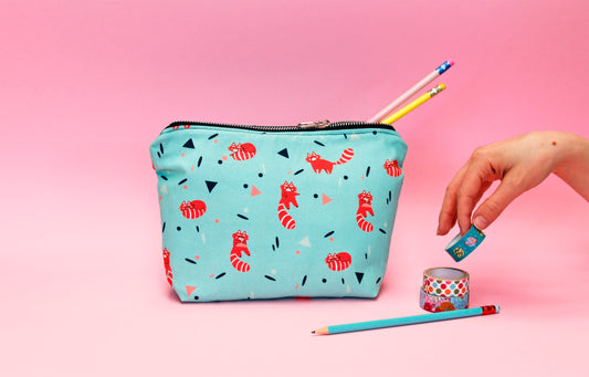 Pencil Case - Twist and Panda with blue background (two sizes available)