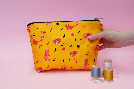 Pencil Case - Twist and Panda with yellow background (two sizes available)