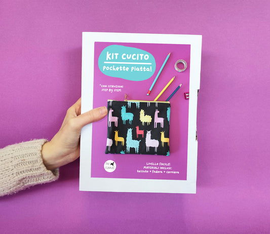 Sewing Kit - Flat Clutch Bag, Funky Llamas Print