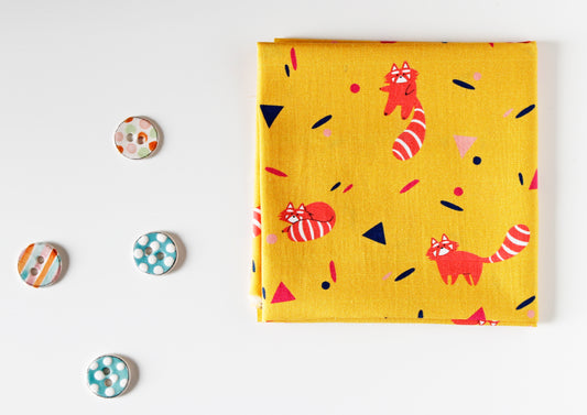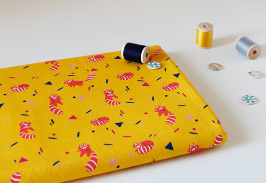 FAT QUARTER, Cotton Poplin Fabric - Twist and Panda, Yellow Background - Quirky Animals Collection