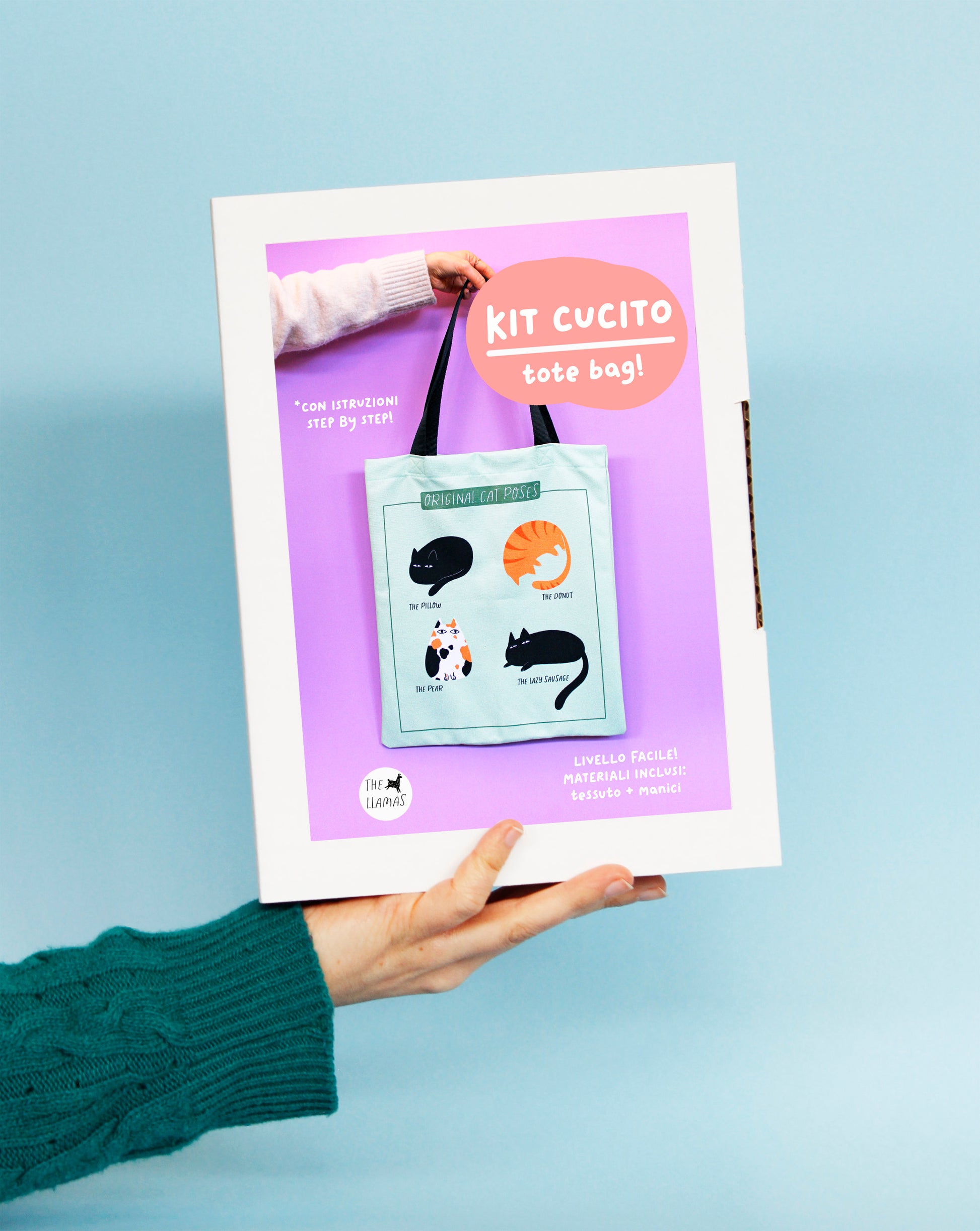 Materiali inclusi: pannelli pre rifiniti in tessuto stampato Original Cat Poses, manici, istruzioni.